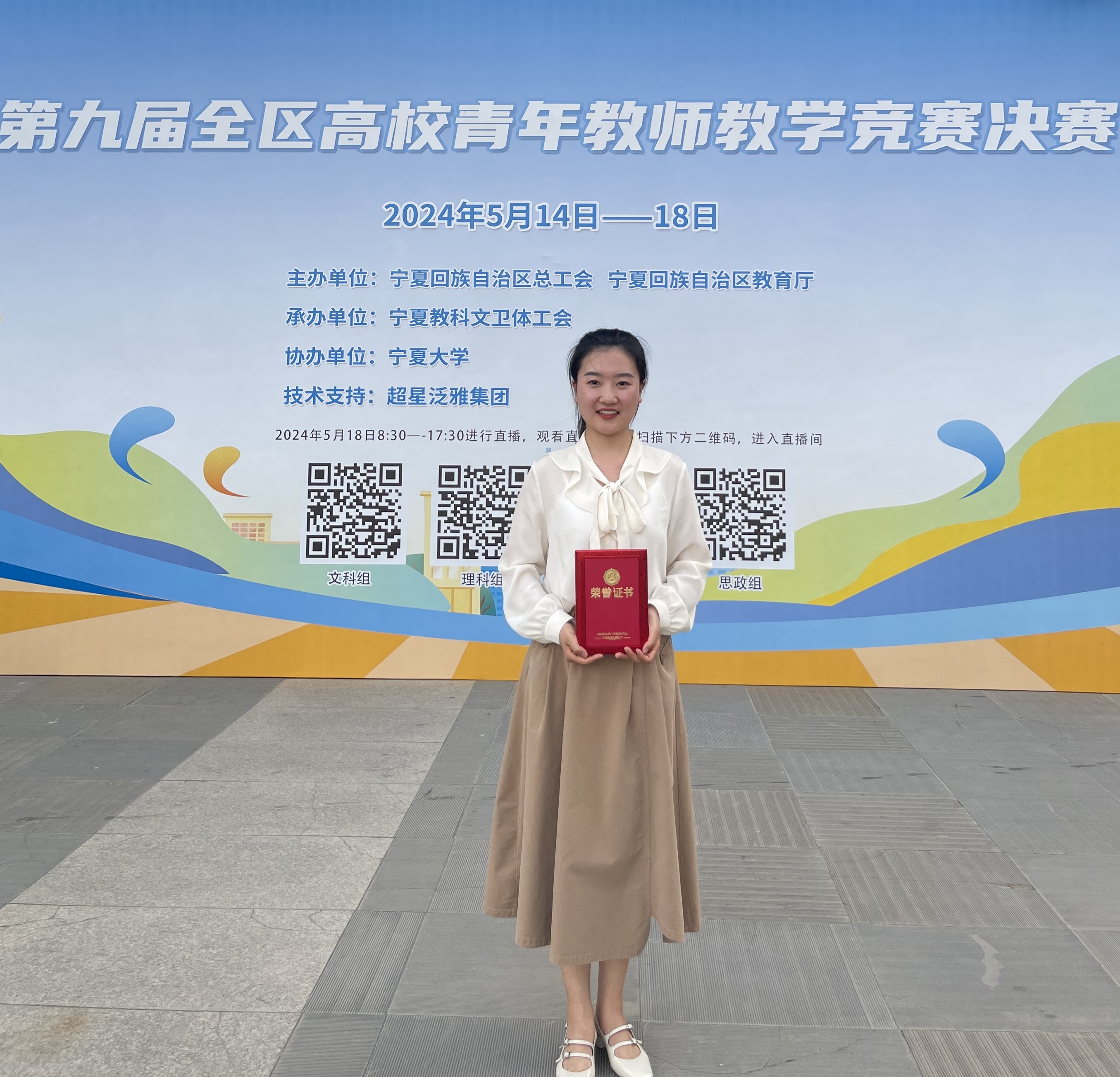 518日,由自治区总工会、自治区教育厅共同主办,宁夏教科文卫体工会承办的第九届全区高校青年教师教学竞赛决赛在宁夏大学落下帷幕。马克思主义学院教师郭佳怡荣获思政组二等奖。