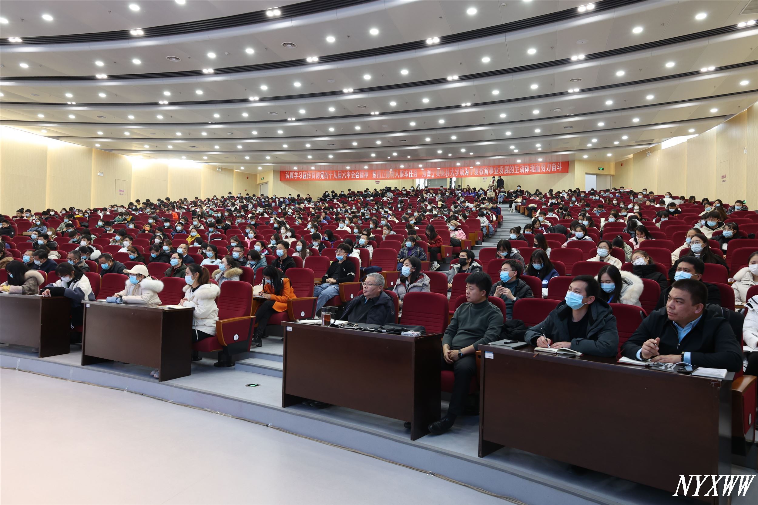 12月15日,临床医学院在雁湖校区知行楼明德学术报告厅举行“形势与政策”专题报告会,学校党委书记、党史学习教育领导小组组长马林讲授“形势与政策”课,学院领导班子、管理部门负责人、各党支部书记、团委书记及学生代表600余人聆听了报告,报告会由学校党委副书记朱建华主持。