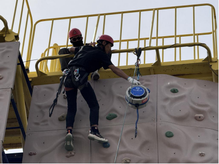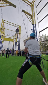 “高空行为体验”项目则为大家提供了挑战自我的平台。在专业教师的指导和保护下,参与者依次挑战高空断桥、攀岩等项目,勇敢面对心理压力,突破自我极限。许多同学虽在初上断桥时感到紧张,但在同伴鼓励和自身努力下,顺利完成了挑战。第一临床学院2024级临床14班陈洪刚同学表示:“刚站上断桥时腿都在发抖,但跃出的那一刻却感受到前所未有的畅快!”他的感言也代表了许多同学挑战自我、战胜恐惧后的真实心声。