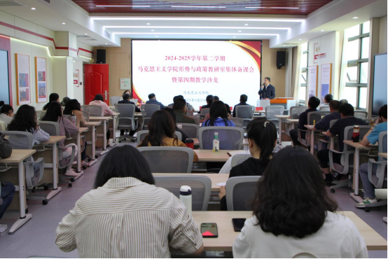5月15日上午,马克思主义学院在应谦教学楼思政VR教学体验中心召开“形势与政策”课集体备课会暨第四期教学沙龙,学院党政领导班子、全体专兼职教师及辅导员代表等50余人参会。