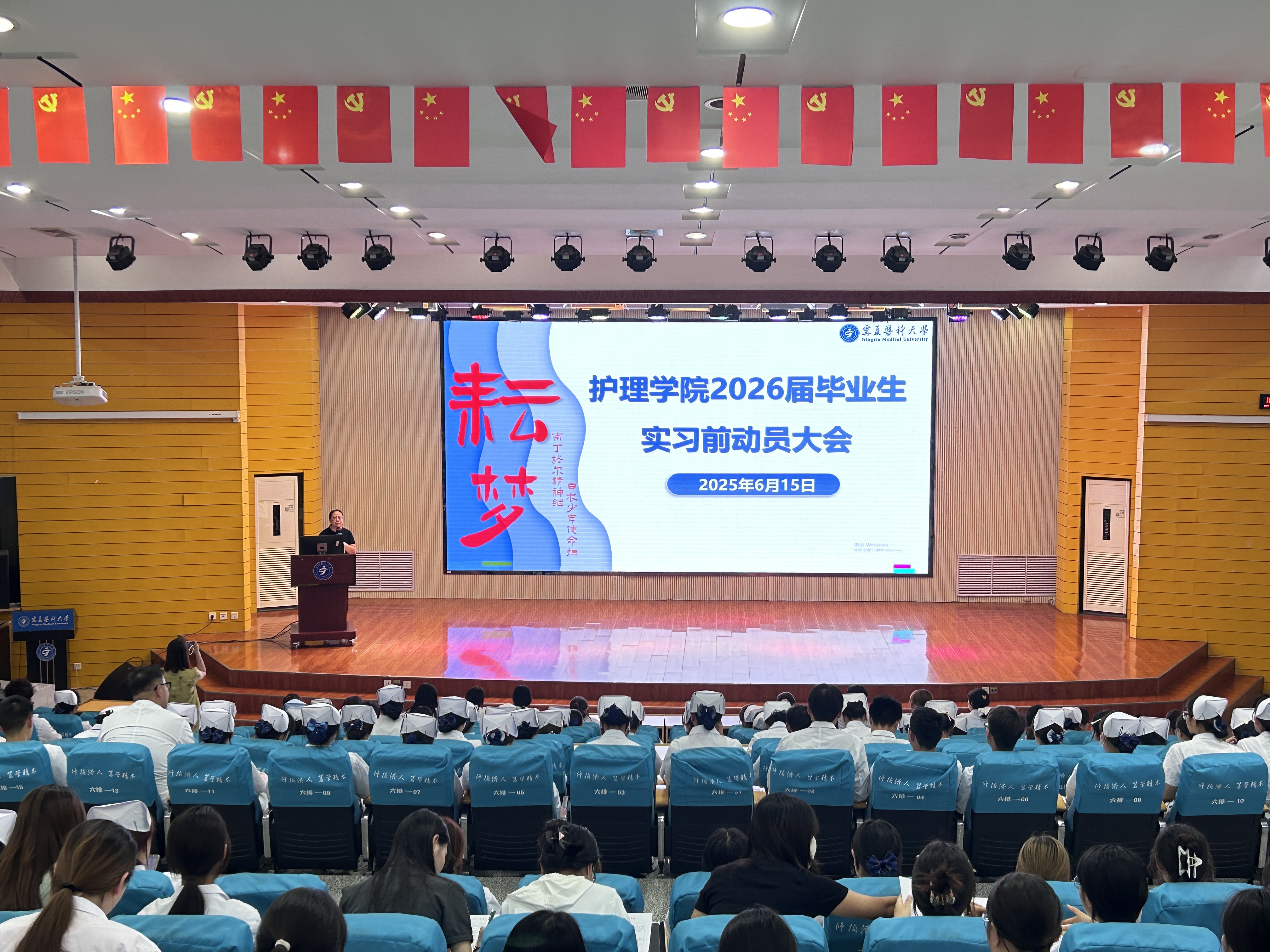 6月15日下午,护理学院在应谦楼启思学术报告厅召开“南丁格尔精神继 白衣少年使命担”主题2026届毕业生实习前动员大会。学院学生工作负责人,学生工作办公室、教学管理办公室老师及全体2026届毕业生参会。
