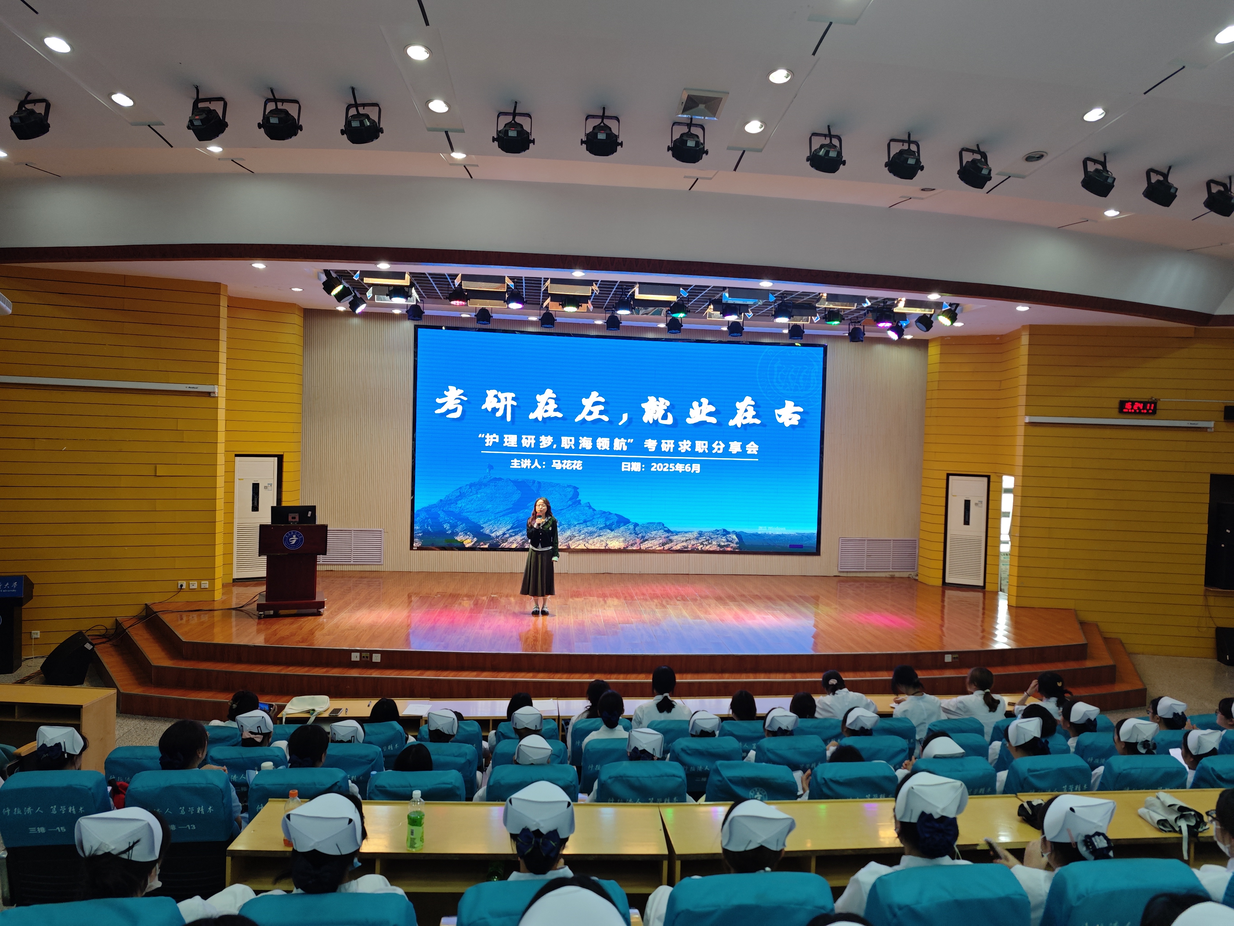 会上,学院教学管理办公室主任详细解读了本专科临床实习规范与要求,从实习流程到操作规范、从护理礼仪到安全准则,用专业与温度勾勒出护理临床实习的清晰路径,让同学们对实习工作多了份笃定与从容。2023级研究生22班马花花、2024级研究生6班姚静结合个人考研、就业与实习经历分享心得,马花花以自身从宁夏民族职业学院到伟德国际1946源于英国的“二战”考研逆袭历程,让同学们明白了“哪怕起点低,也能用汗水铺就进阶之路”的奋斗哲学;姚静则聚焦职业防护与应急处理、生活与心理调试、实习机会与未来发展,倾囊相授饱含个人心血与实践智慧的宝贵经验,为同学们即将开启的实习旅程注入了稳步前行、足履实地的底气。