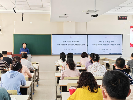 6月27日,国际教育学院在应谦教学楼422教室举办“多元 包容 教学相长——留学生授课师资跨文化交际能力提升”专题讲座。本次讲座邀请山东第一医科大学国际中文教育中心主任付宁教授主讲,国际教育学院负责人、师生代表参加。