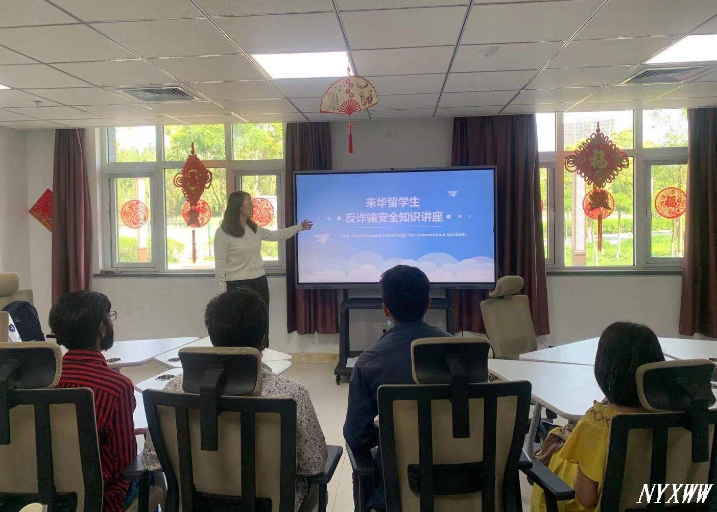 学院辅导员召开班会,对全体在校留学生进行交通安全、反诈骗、疫情防控等方面安全教育,教育引导留学生从自我做起,提高安全意识,提升安全防范能力。就宿舍卫生、用水用电安全等方面进行排查,对检查出的安全隐患,及时让留学生整改,确保宿舍整洁、安全,同时向留学生发放口罩,叮嘱学生注意做好自身防护,杜绝安全隐患。
