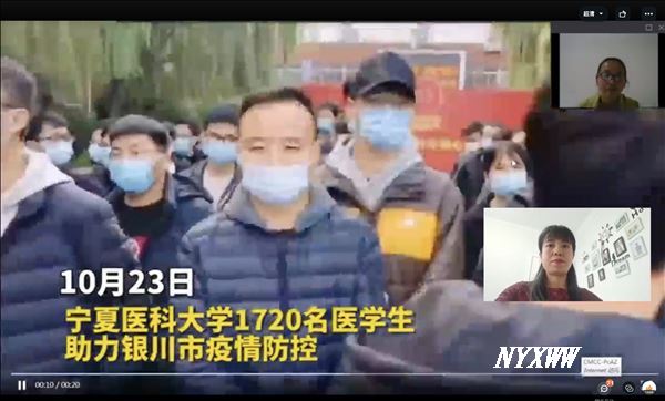 在线上直播中,辅导员围绕习近平总书记“七一”重要讲话精神,结合疫情防控工作,对学生开展疫情防控教育及心理疏导。辅导员表示,在这场抗击疫情的阻击战中,青年表现出了大无畏、敢作为的责任担当精神。伟德1720位同学主动请战,报名加入抗疫一线,助力核酸检测工作。一个个平凡的身影挺身而出,在抗击疫情中逆行、磨砺、成长,彰显了宁医学子青春的蓬勃力量,希望同学们向优秀看齐,勇于担当,践行“请党放心、强国有我”的青春誓言。