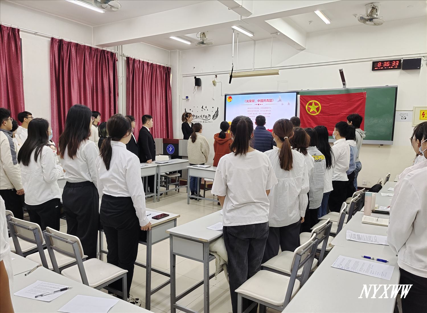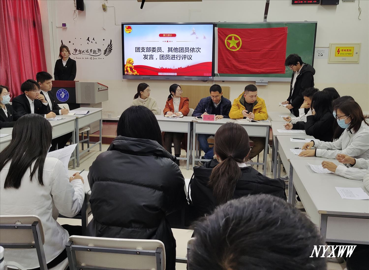 本次示范性组织生活会由2019级临床药学班团支部书记马小青主持。会上,支部全体团员合唱中国共青团团歌。团支部书记就支部今年党史学习教育开展、学习习近平总书记“七一”重要讲话精神、学习党的十九届六中全会精神等情况进行了汇报。团支部积极落实“学史明理、学史增信、学史崇德、学史力行”的要求,紧密联系团员思想学习工作实际,按时开展主题团日活动和专题集中学习,交流学习体会,查找差距不足,激发责任担当。团支部委员和其他团员依次发言,支委成员结合团支部工作和自身个人对照检查剖析。其他团员结合自身情况,对照团员先进性评价标准,进行个人自评、团员互评和组织评价,明确自身不足及今后努力方向。最后,全体团员重温入团誓词。