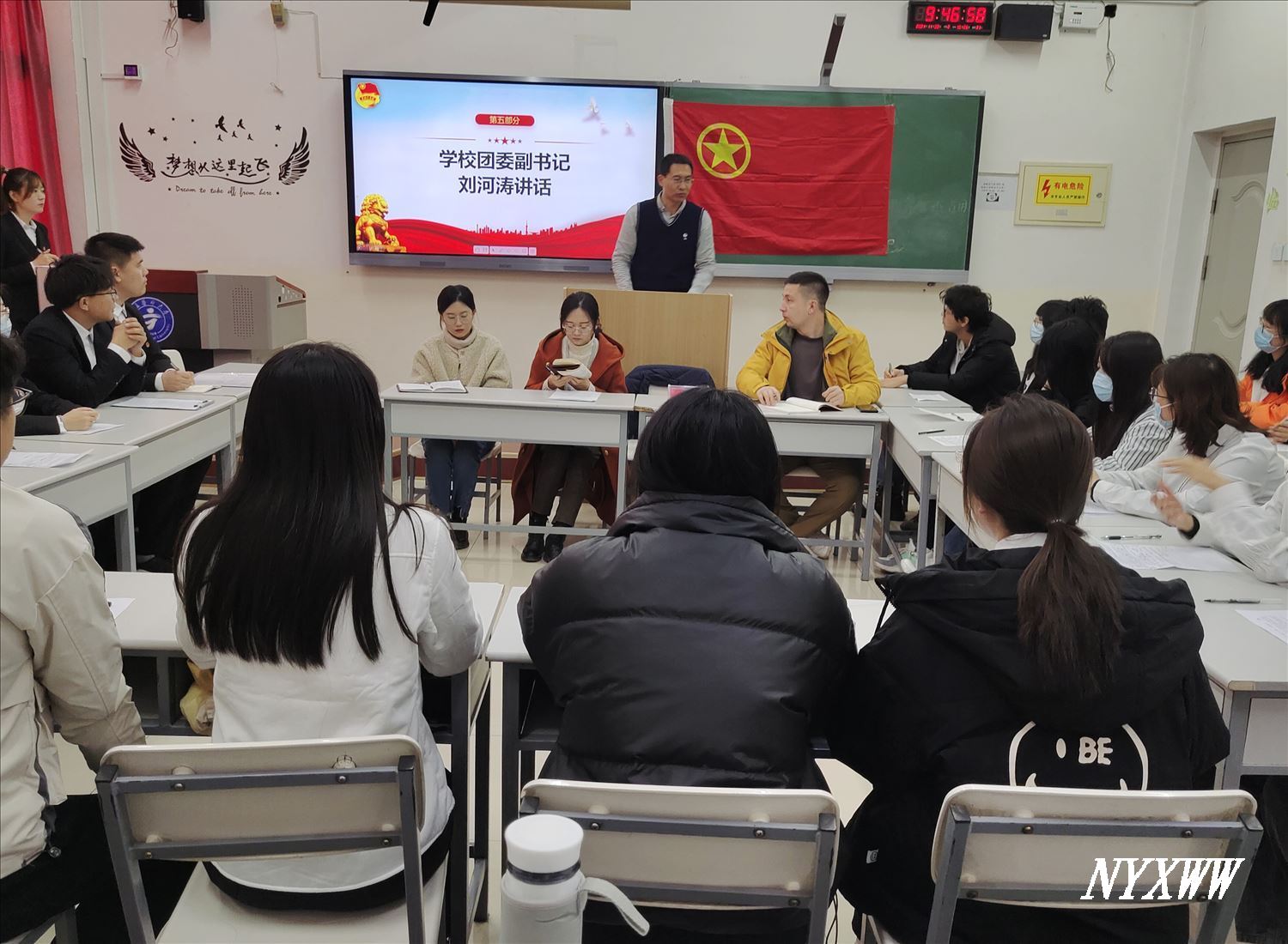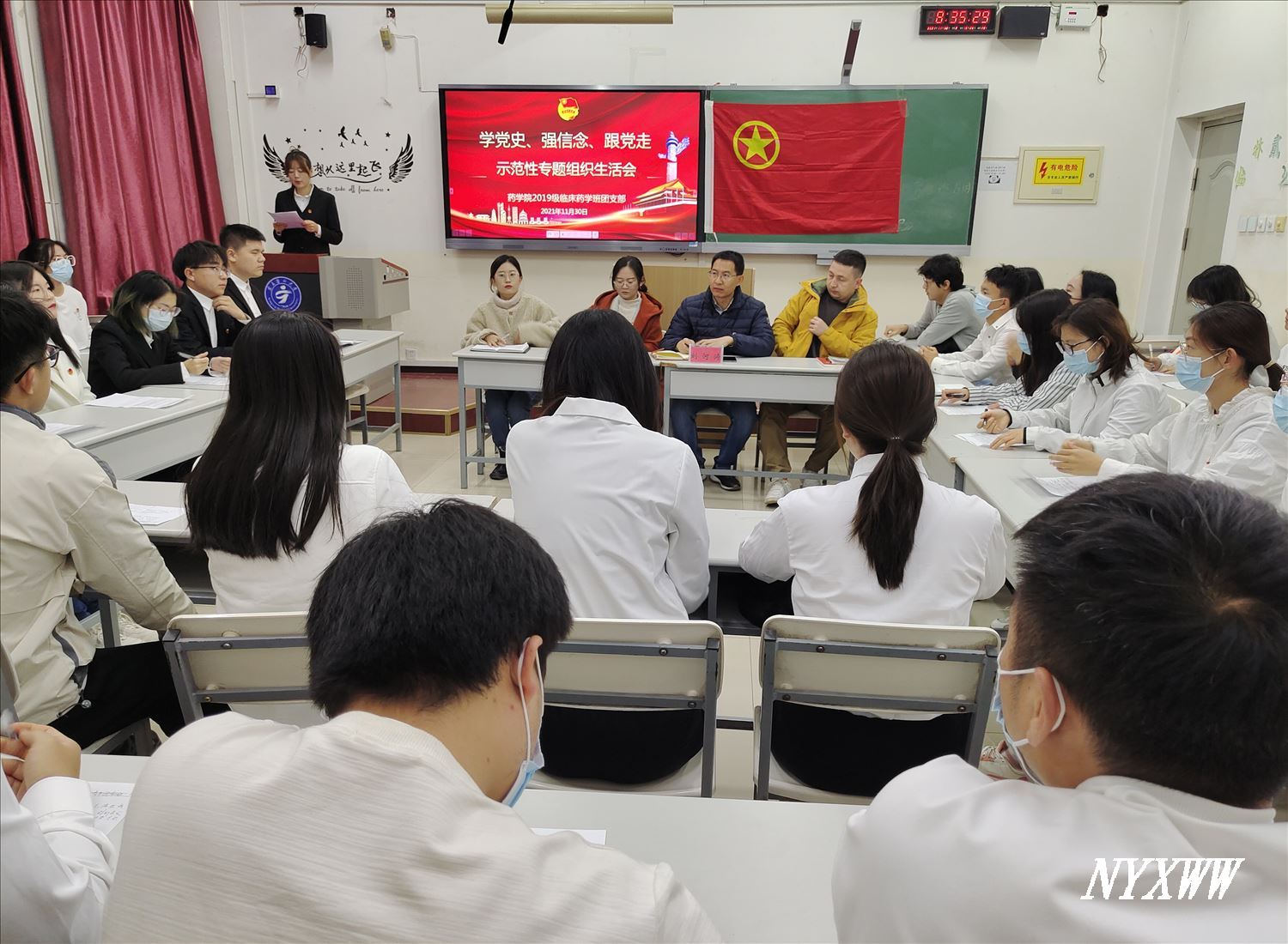 11月30日上午,药学院2019级临床药学班团支部在应谦教学楼开展“学党史、强信念、跟党走”示范性专题组织生活会。学校团委副书记刘河涛、团委组织宣传部副主任李婷、药学院团委副书记麦麦提·阿卜杜热黑木、辅导员金子彤参加了会议。