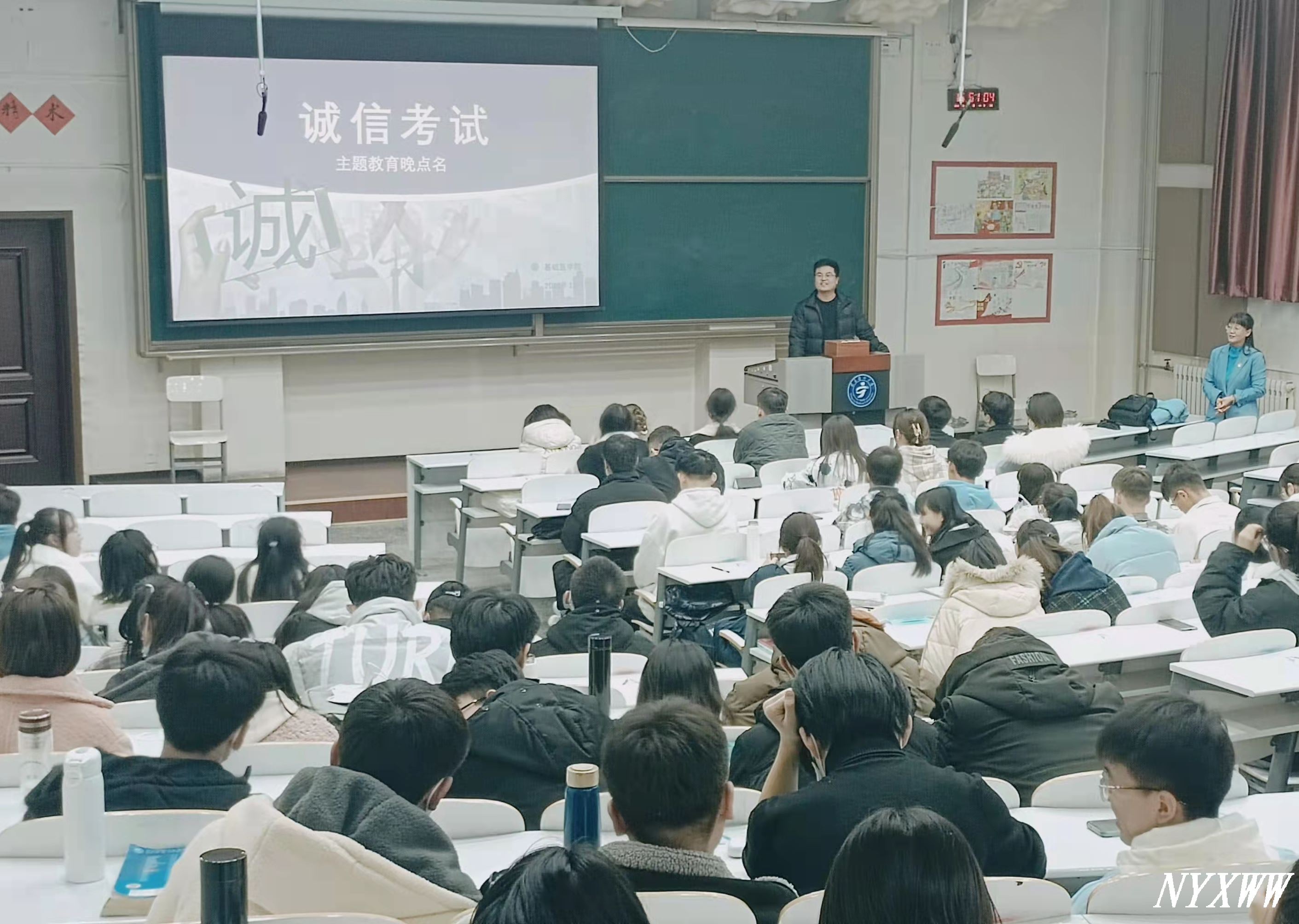 学院党委副书记张艳丽从调查问卷和两个问题引出“爱与不艾”晚点名主题,为大家讲述艾滋病传播的途径、世界艾滋病日以及宣传语,告诫同学们要保护好自己和他人。通过讲述校园贷和电信诈骗相关案例以及校园贷和电信诈骗的形式、产生的原因、危害及预防措施等,希望同学们要保护好自己的财物,筑牢安全意识,做到洁身自好。对学生开展诚信考试主题教育,强调了考试纪律,特别要防范和杜绝违纪舞弊事件。