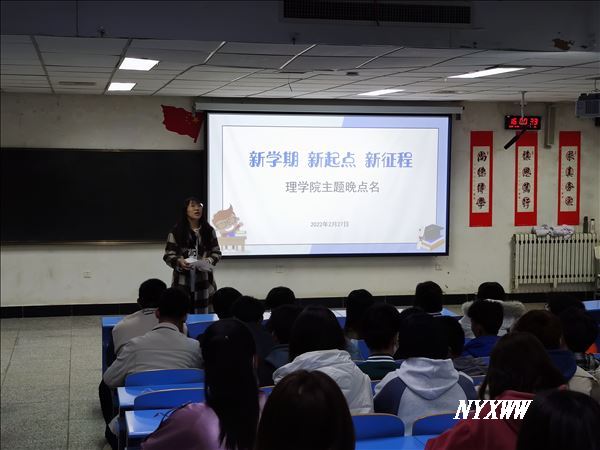 2月27日,理学院以“新学期 新起点 新征程”为主题,组织学院各年级开展新学期第一次主题晚点名教育活动。