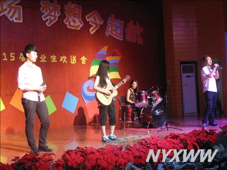 毕业生晚会以炫酷的街舞《咆哮》开场,学生组合CPU为大家献上乐器弹唱《平凡之路》,柔美的舞蹈《自由行走的花》和诙谐幽默的小品《五官争功》以及表达祝福的情景剧《启程》赢得了师生们热烈的掌声。在互动环节,学院马宜青老师为即将毕业的学生送去美好的祝福,毕业生也为教师送去感恩的鲜花,师生共同观看了毕业生视频,一起感受同学们大学四年的点点滴滴。教师合唱《明天会更好》将晚会推向高潮,掌声、欢笑声不断,晚会在诗朗诵《我们毕业了》中缓缓落下帷幕。
