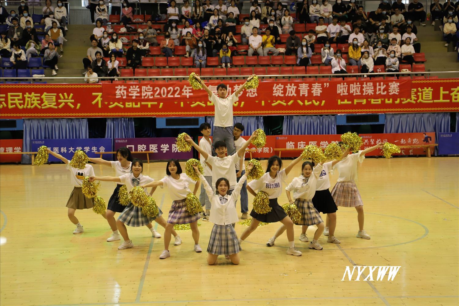 参赛队伍由2020级、2021级两个年级十个班级组成,参赛队伍惊艳亮相,以昂扬的姿态、整齐有力的动作展示当代大学生的风采,让现场观众在充满活力的乐曲中感受到了运动带来的无限快乐。经过激烈角逐,2020级高职药学一班获一等奖,2020级高职药学二班获二等奖,2020级中药班获三等奖,2021级临床药学班获得优秀奖。