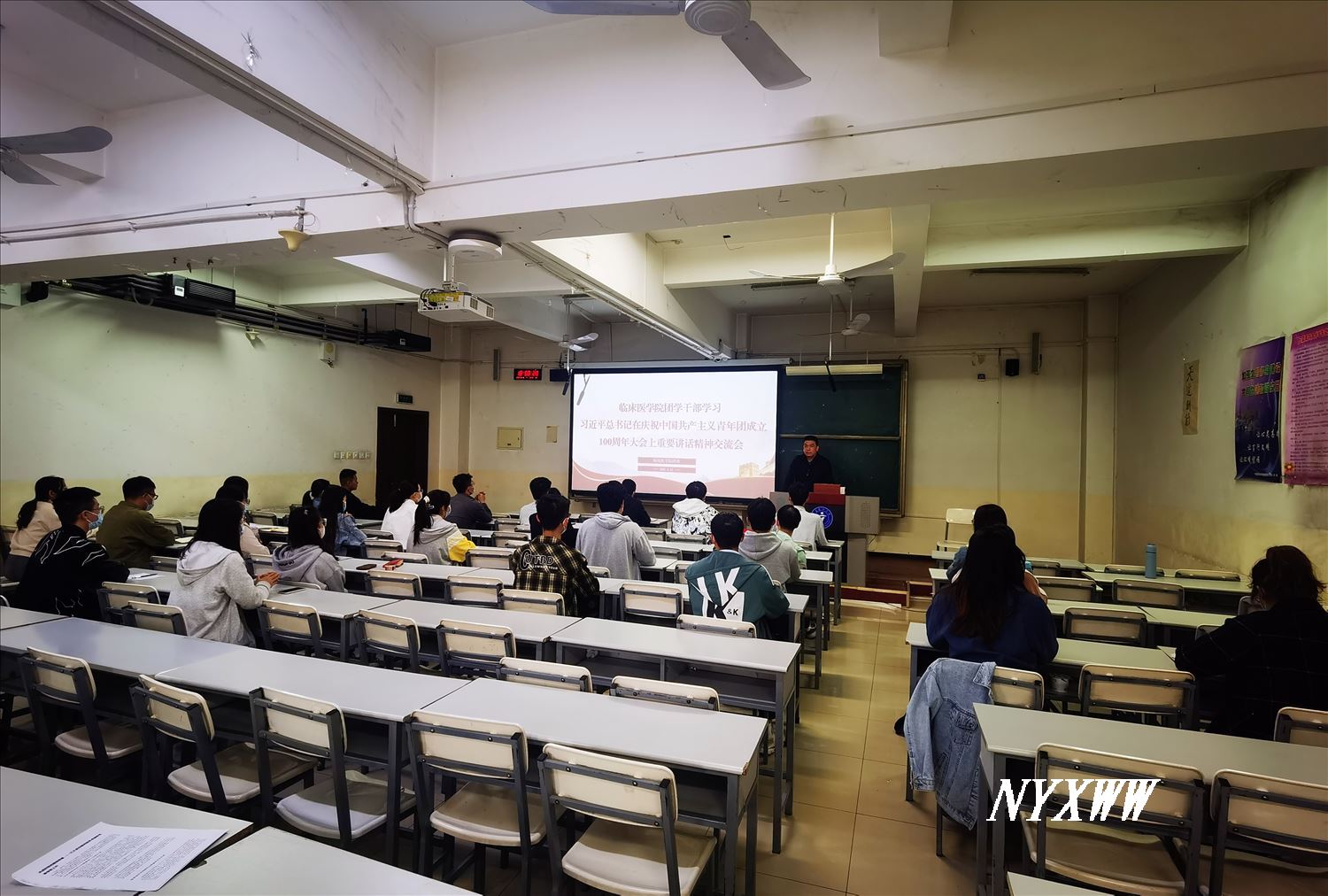 5月12日,临床医学院在雁湖校区应谦教学楼组织团学干部举办深入学习习近平总书记在庆祝中国共产主义青年团成立100周年大会上重要讲话精神交流会。学院党委副书记马宝立、全体团学干部参加,学院团委书记主持会议。