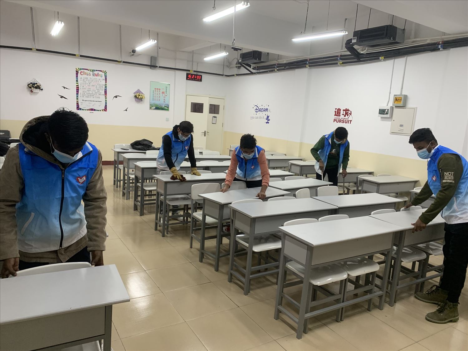 2月27日至3月5日,国际教育学院组织152名在校留学生,开展了图书整理、环保宣传、安全守护、美化校园等志愿服务活动。