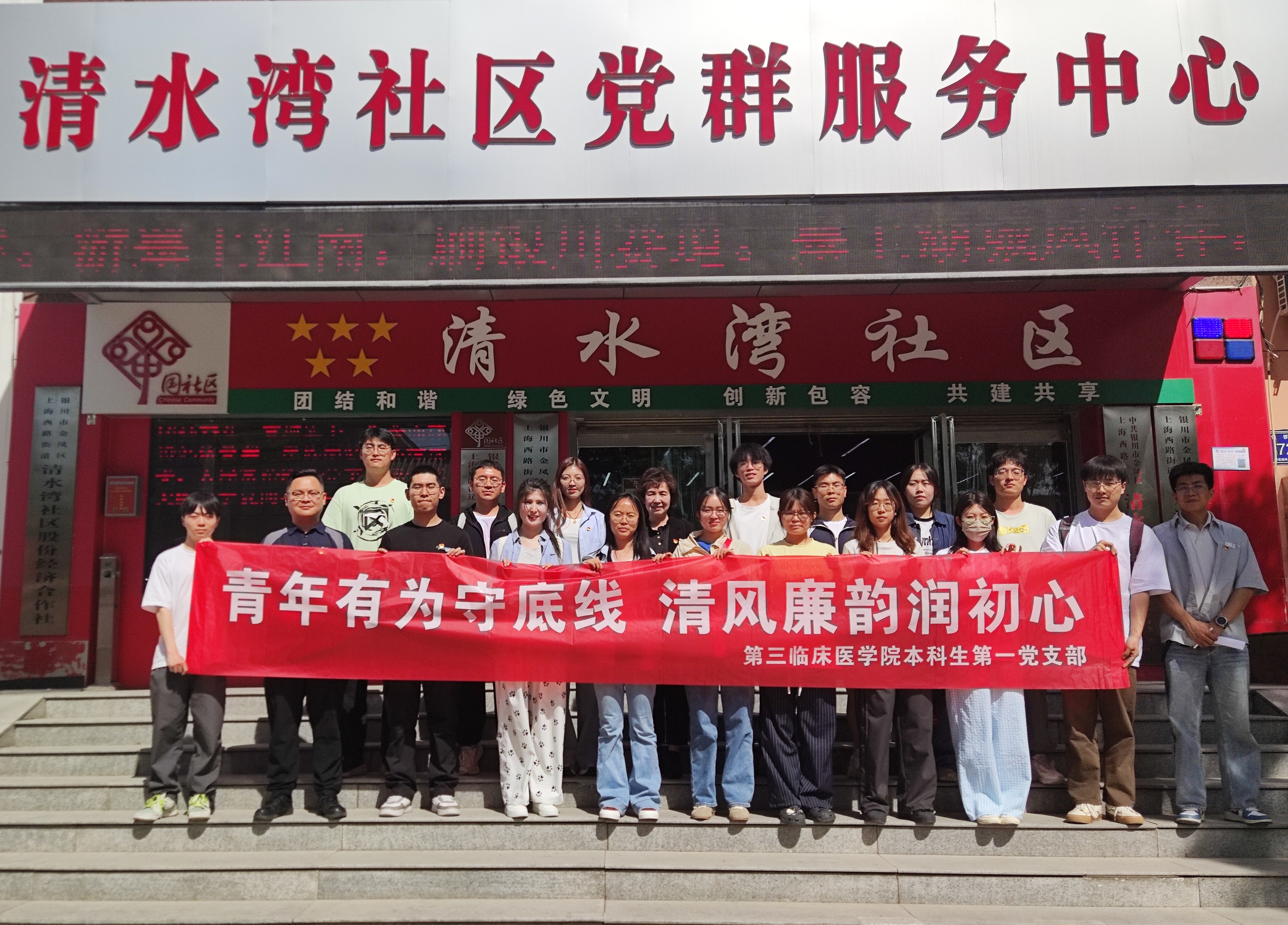 5月15日下午,第三临床医学院本科生第一党支部走进清水湾社区廉洁文化教育馆开展“青年有为守底线,清风廉韵润初心”主题党日活动,学院党委常务副书记訾秀娟、全体学生辅导员和党支部学生党员、党员发展对象及入党积极分子参加活动。