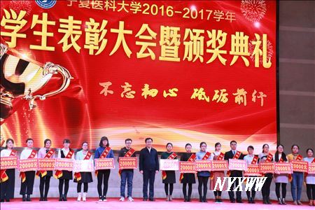 会上对临床医学院2014级临床教改班等32个先进班集体,王亚宁等5名校长特别奖学金获得者,王南等10名三好学生标兵,凌晓等145名三好学生,崔奇等193名优秀学生干部,高余等298名各类单项奖获得者予以表彰奖励。