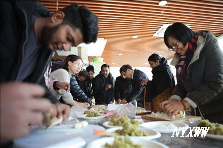 听,雁湖校区留学生食堂时不时传来欢声笑语。“太好吃了”“这个是我的”,为了让留学生了解中国传统节日冬至的文化习俗,12月22日冬至,国际教育学院开展了“冬至包饺子 温情暖寒冬”文化习俗体验活动。学校领导孙涛、牛阳、何仲义,学校办公室、宣传部负责人及国际教育学院全体教师参加了活动。