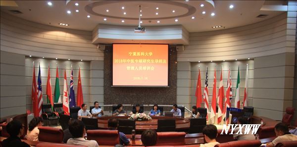 7月16日下午,学校2018年度中医学导师与管理人员专题培训在正德楼国际会议中心举行。学校副校长姜怡邓出席会议,宁夏中医医院、银川市中医医院、中医学院等三部门的导师、主管院长、规培负责人、研管人员以及研究生院工作人员参加了会议。会议由研究生院院长主持。