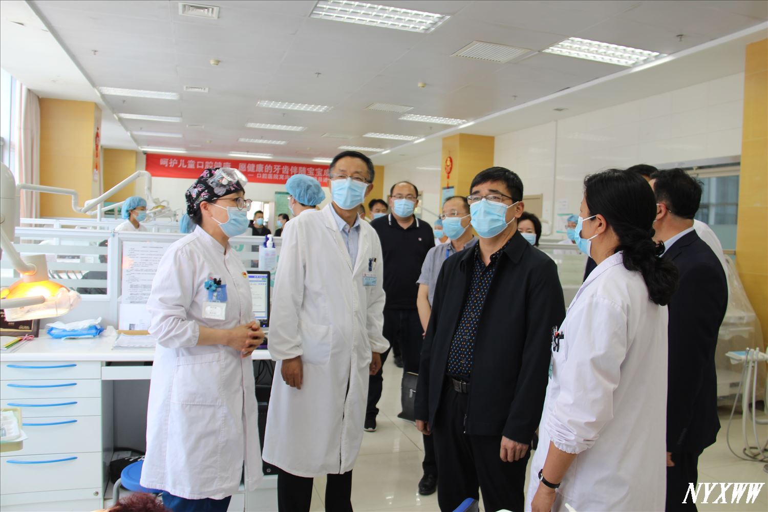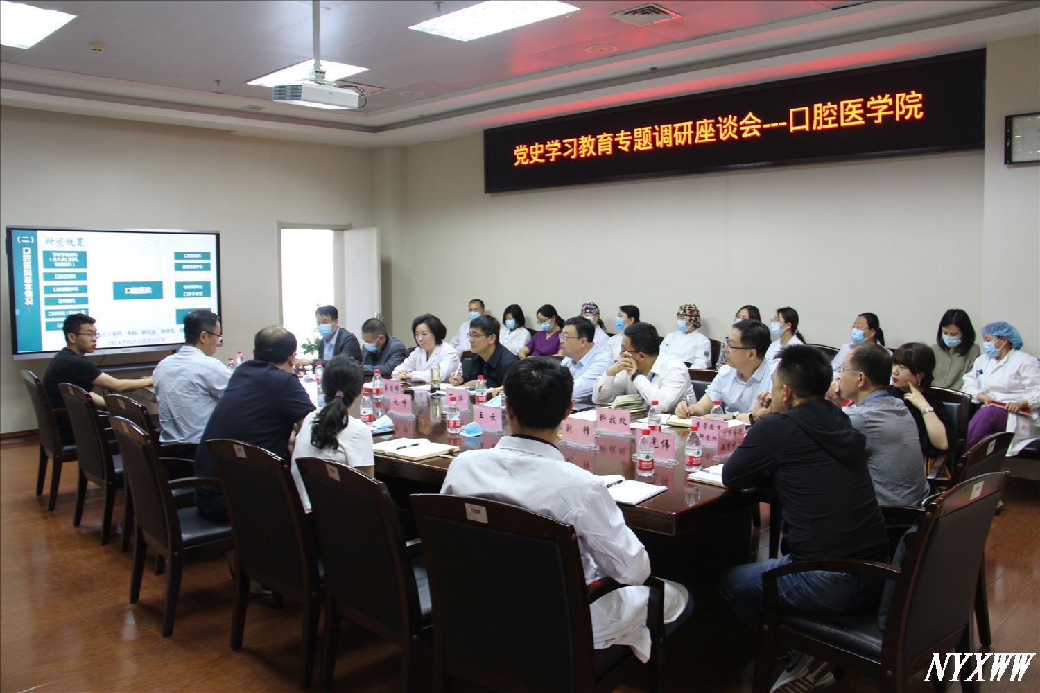 5月11日下午,学校校长姜怡邓、副校长丁聃与办公室、科技处、发展规划处、临床实践教学中心、医学教育研究所负责人一行赴口腔医学院调研指导工作。姜怡邓一行实地察看了口腔医学院(附属口腔医院)门诊楼,了解医疗运行、疫情防控常态化工作等方面情况。口腔医学院班子成员、各部门负责人、师生代表30余人参加调研座谈会。会上,学院院长黄永清就口腔医学院党史学习教育和重点工作开展情况、存在问题及需要学校支持解决的问题进行详细汇报。