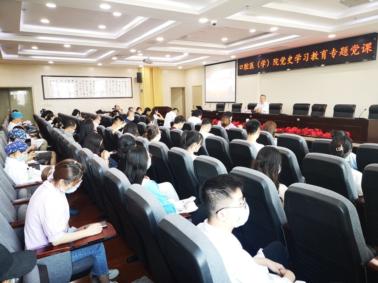 5月21日,学校党委党史学习教育第一巡回指导组组长、学校党委副书记朱建华为口腔医(学)院全体师生讲授题为“学党史 强信念 跟党走”的专题党课。两院班子成员、全体教职工、全体学生党员听取了党课。