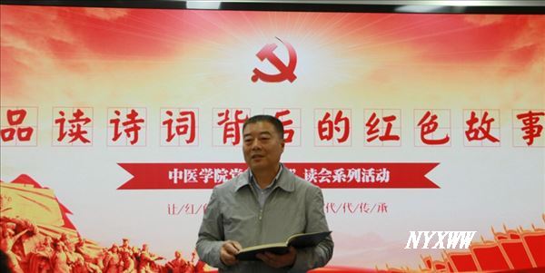 谢波对本次活动进行了点评。他讲到,通过每位同志精选的红色诗词讲解,将中国共产党的精神血脉有机的串联起来,每一首诗歌背后的故事都感人至深。中医学院要组织广大师生认真学习贯彻习近平总书记在河南南阳考察期间关于中医药发展的重要指示精神,结合学院实际,组织开展好形式多样、富有成效的党史学习教育,真正实现学史明理、学史增信、学史崇德、学史力行的目标。