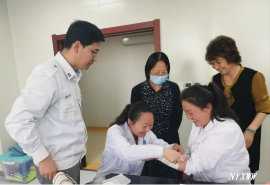 本次培训采取理论知识集中讲授和救护技能实际操作相结合的方式,培训邀请银川市120急救中心主任丁磊以及朱瑾、王丽萍老师分别从基本急救理论知识、体外自动除颤仪(AED)操作、气道异物梗阻急救、心肺复苏技术(CPR)和创伤救护等方面,以通俗易懂的方式把理论讲解、现场演示和实际操作紧密结合,为参训学员们讲授了一堂形象生动的急救知识培训课,让学员掌握了急救知识和技能。