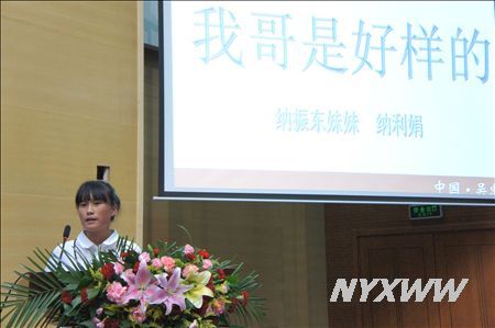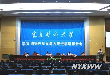 报告会上,报告团成员吴忠市公安局利通区分局民警苏军、吴忠市人民医院护士王娟、纳振东的妹妹纳利娟、江西渝州科技职业学院团委书记何立、吴忠市电视台记者何迎霞5名报告团成员从不同角度、不同侧面讲述了回族优秀青年李潇、纳振东的感人事迹,感动了现场每一位师生。会场上不时的响起热烈的掌声。同学们自发的举起“宁医青年向李潇、纳振东致敬”的标语表示对英雄的敬仰。