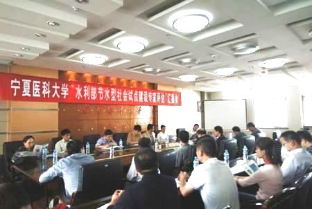 9月14日下午,水利部节水型社会建设试点评估组一行在在宁夏节水办公室副主任司建平,银川市节水办主任马炳胜、副主任梁志刚等陪同下来到伟德,就学校节水型社会建设试点工作进行评估检查。