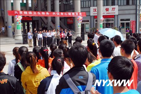 5月17日上午,“共享公共卫生服务,共促身心健康发展”暨2013年“走进公共卫生”系列活动启动仪式在雁湖校区尚德广场举行。自治区卫生厅纪检组长刘跃成、副厅长黄涌,学校党委副书记马继军及自治区卫生厅、宁夏疾病预防控制中心、学校相关部门负责人,全体辅导员、学生代表400余人参加了启动仪式。