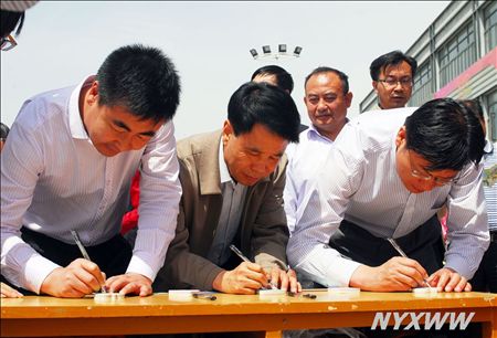 刘跃成组长、黄涌副厅长、马继军副书记在横幅上签名