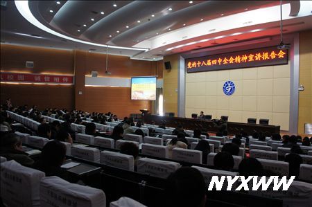 12月10日下午,学校在雁湖校区尚行会议中心举办党的十八届四中全会精神宣讲报告会,特邀自治区党委讲师团团长郝彤教授作了题为“全面推进依法治国 加快建设法治中国”的专题报告。学校领导张建中、朱建华、何仲义,全体处级干部,党政及教辅部门工作人员,各学院教师代表和全体辅导员300余人聆听了报告。纪委朱建华书记主持报告会。