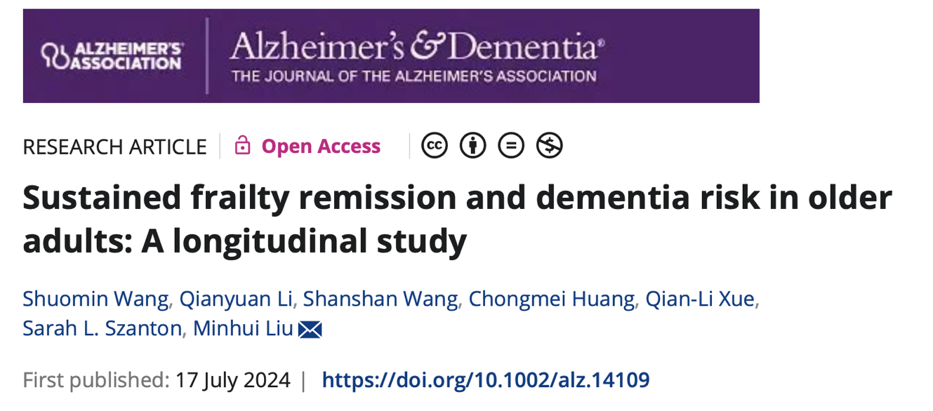 护理学院刘民辉教授团队在Alzheimer's & Dementia发表原创性论著