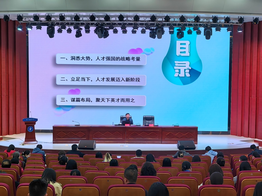 黄河结合学习贯彻习近平新时代中国特色社会主义思想,从“洞悉大势,人才强国的战略考量”、“立足当下,人才发展迈入新阶段”、“谋篇布局,聚天下英才而用之”三个方面对实施科教兴国战略,强化现代化建设人才支撑的必要性和重要意义进行了系统阐释和详细解读。黄河讲到,人才作为第一资源,同教育和科技一起为现代化建设提供战略性支撑。为深入实施人才强国战略,必须加快建设世界重要人才中心和创新高地,深化人才发展体制机制改革,加快建设国家战略人才力量,全方位培养、引进、用好人才,营造识才爱才敬才的环境。