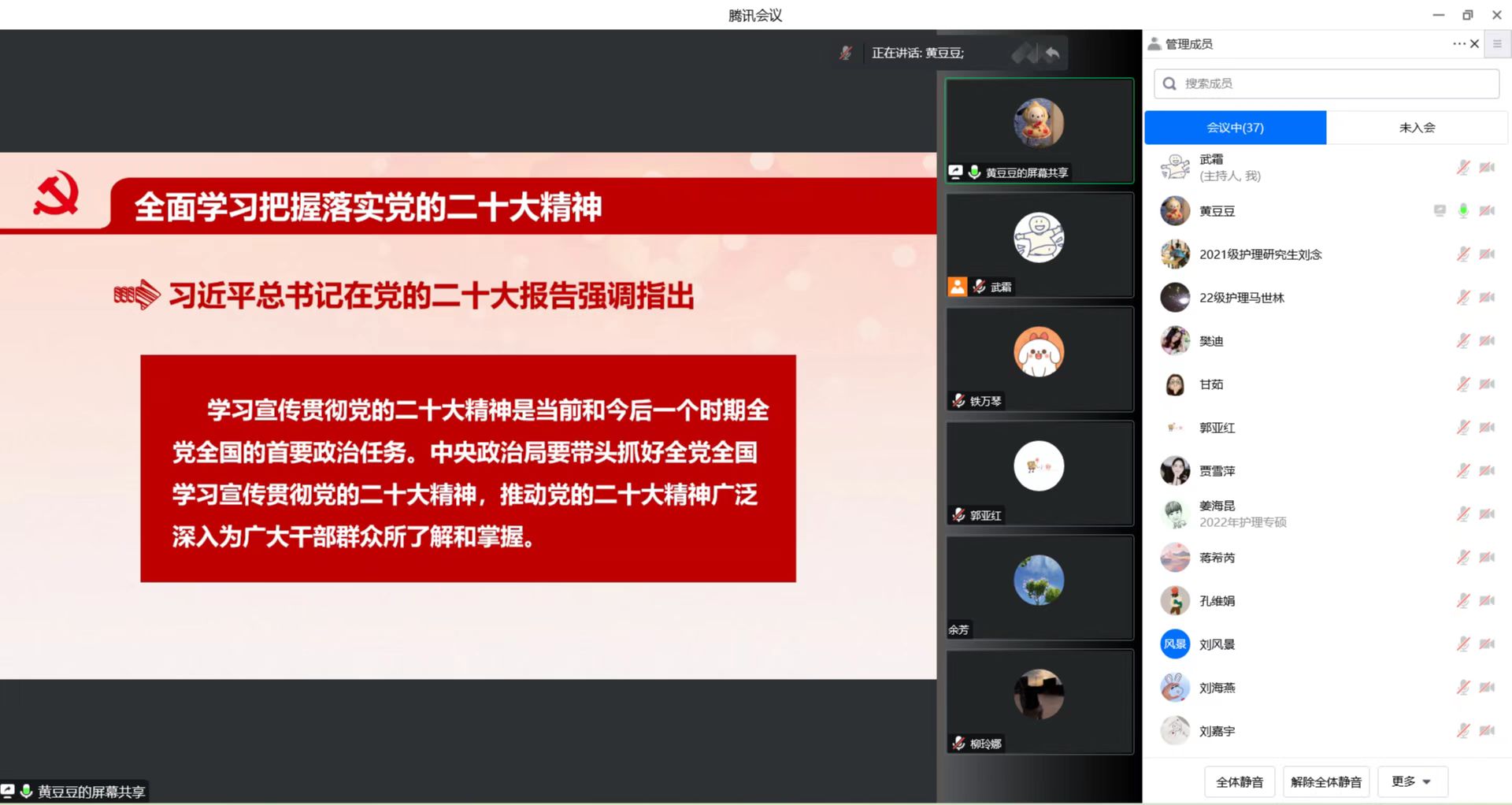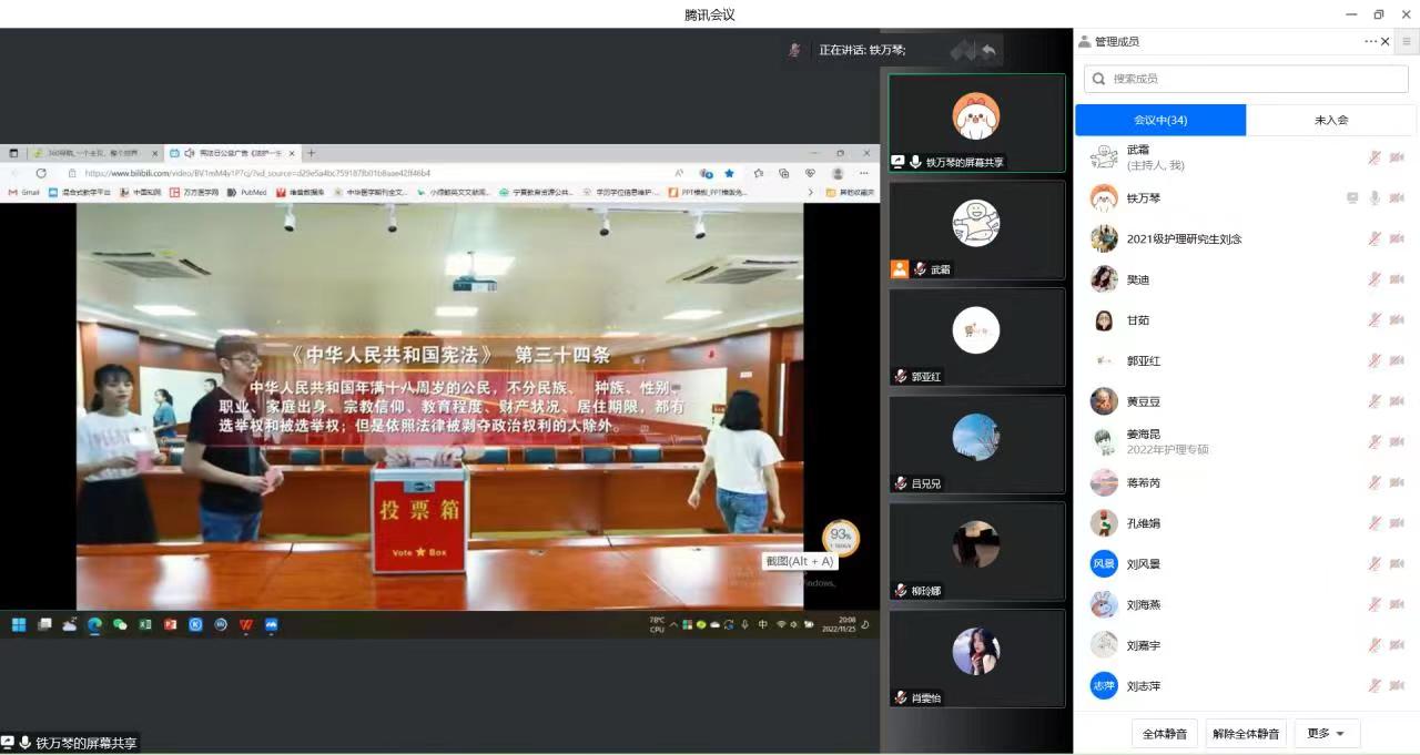 11月25日晚,护理学院研究生党支部线上开展学习党的二十大精神主题党日活动,全体党员及入党积极分子参加了活动。