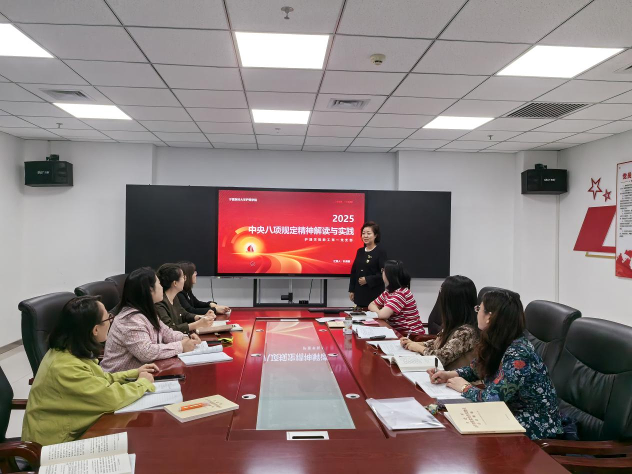 5月6日上午9:00,护理学院教工第一党支部在知行楼1015室开展践行中央八项规定精神,全面提升教师党员综合素养为主题的主题党日活动,会议由支部书记朴海善主持,支部全体党员老师参会。