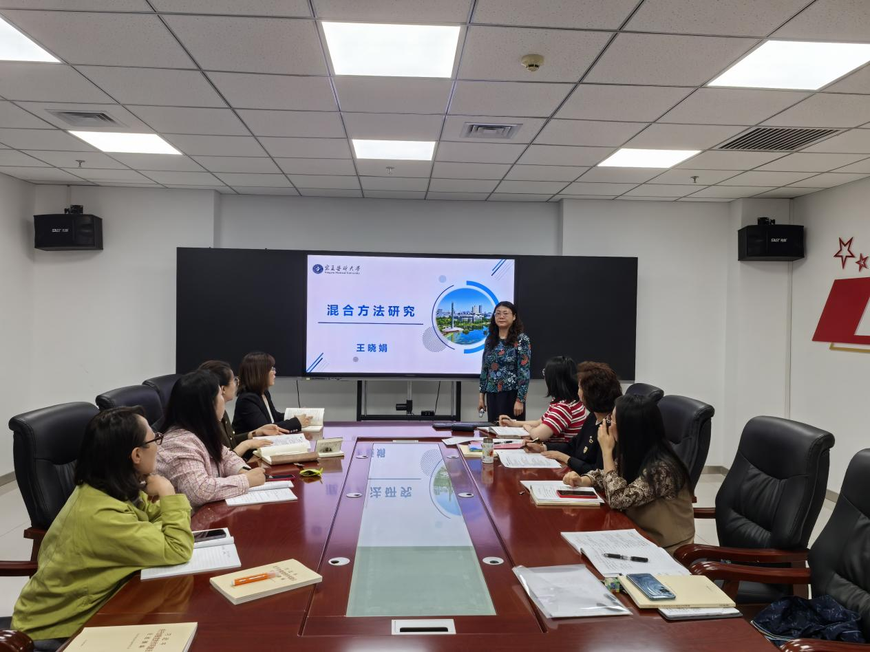 聚焦“党建+科研”融合路径,王晓娟博士开展专题讲座——《混合方法研究》,从混合方法研究的性质、设计、解释性时序设计、混合方法研究的报告指南四个方面进行深入讲解。大家就研究样本来源等方面与王晓娟老师进行深入交流。