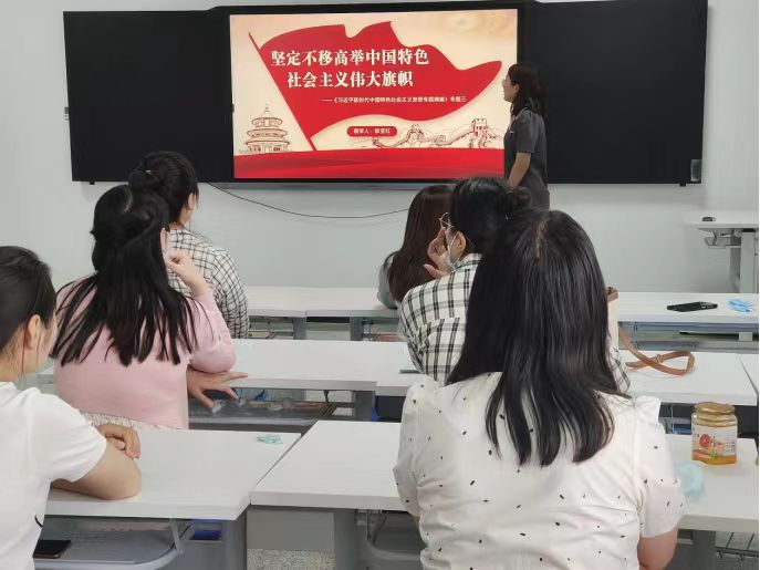 郭亚红、杨小萍、刘海燕、刘风景等四名党员和入党积极分子围绕《习近平新时代中国特色社会主义思想专题摘编》《实现中华民族伟大复兴是中华民族近代以来最伟大的梦想》《改革开放永无止境》进行分享。万慧、袁佳琳就主题教育的心得体会进行交流分享。