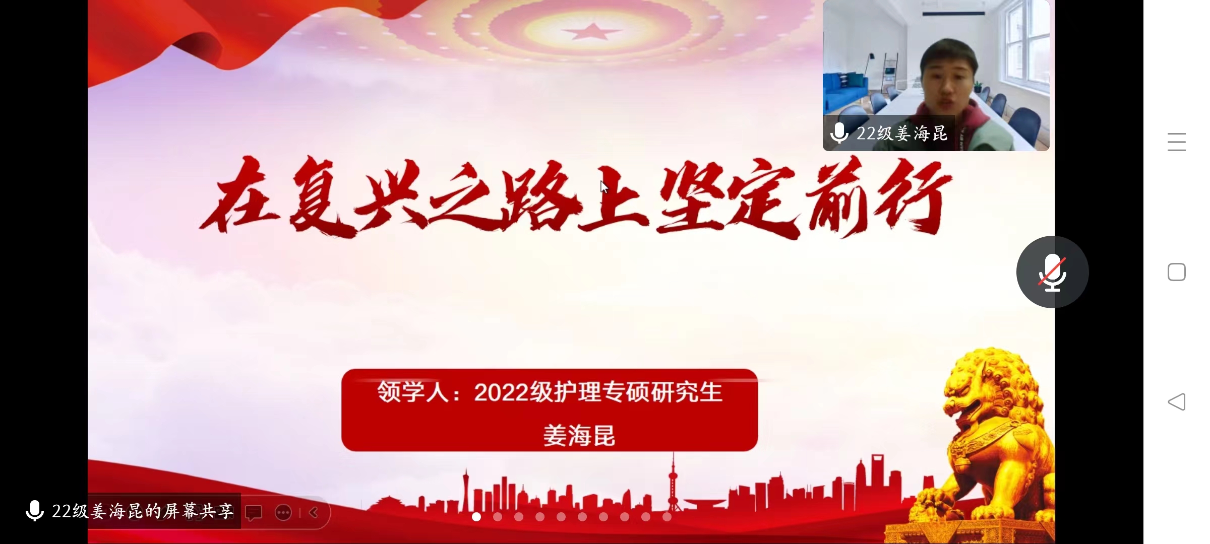 10月13日晚,护理学院研究生党支部线上集体学习党的十九届七中全会精神,全体党员和入党积极分子参加了此次学习。