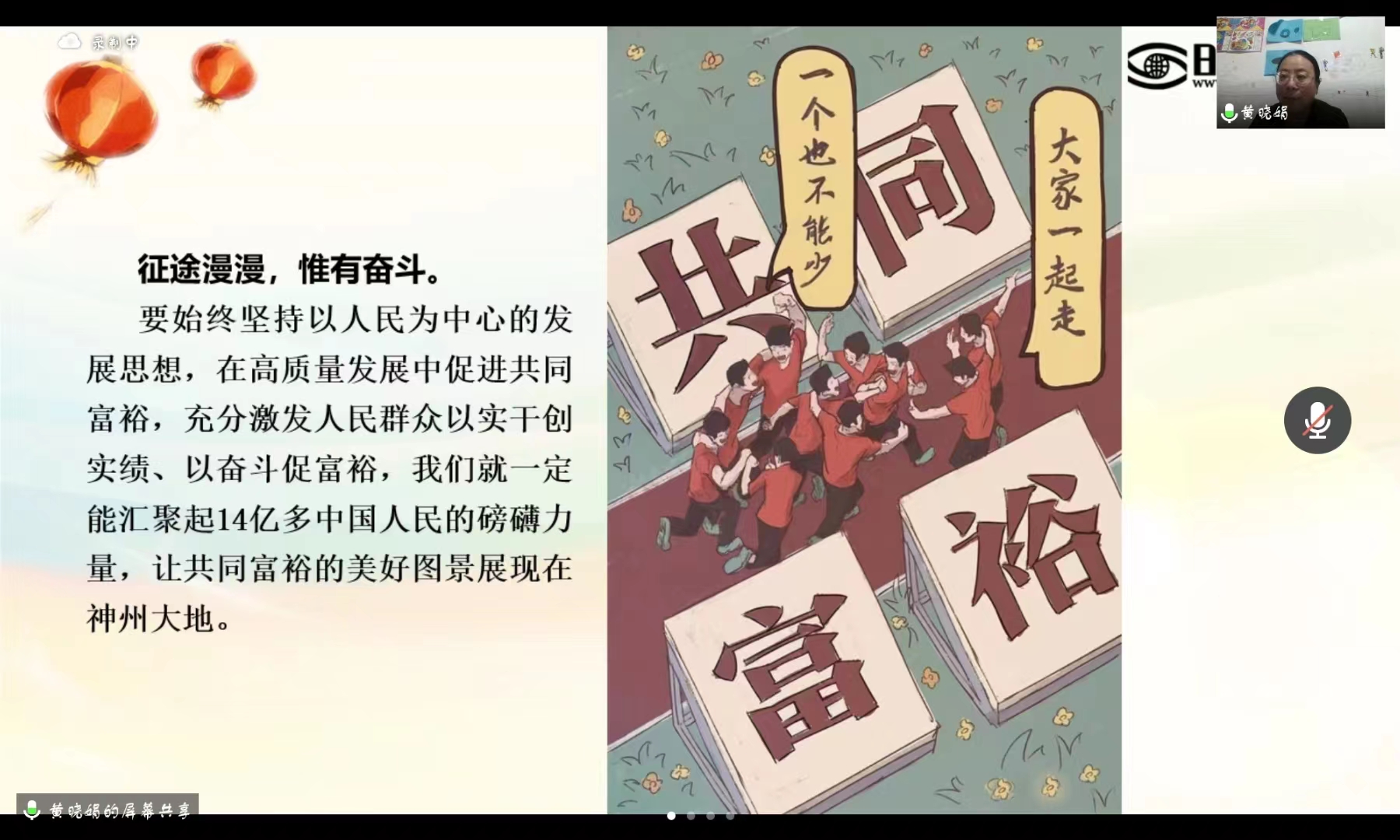 党支部书记黄晓娟以《不断推进全体人民共同富裕》为题讲党课,她从理解共同富裕的科学内涵、把握共同富裕的实践途径、认清共同富裕的未来征程三个方面详细介绍了共同富裕。引导支部全体党员和入党积极分子始终坚持以人民为中心的发展思想,在高质量发展中促进共同富裕,激发青年研究生以实干创实绩、以奋斗促富裕。