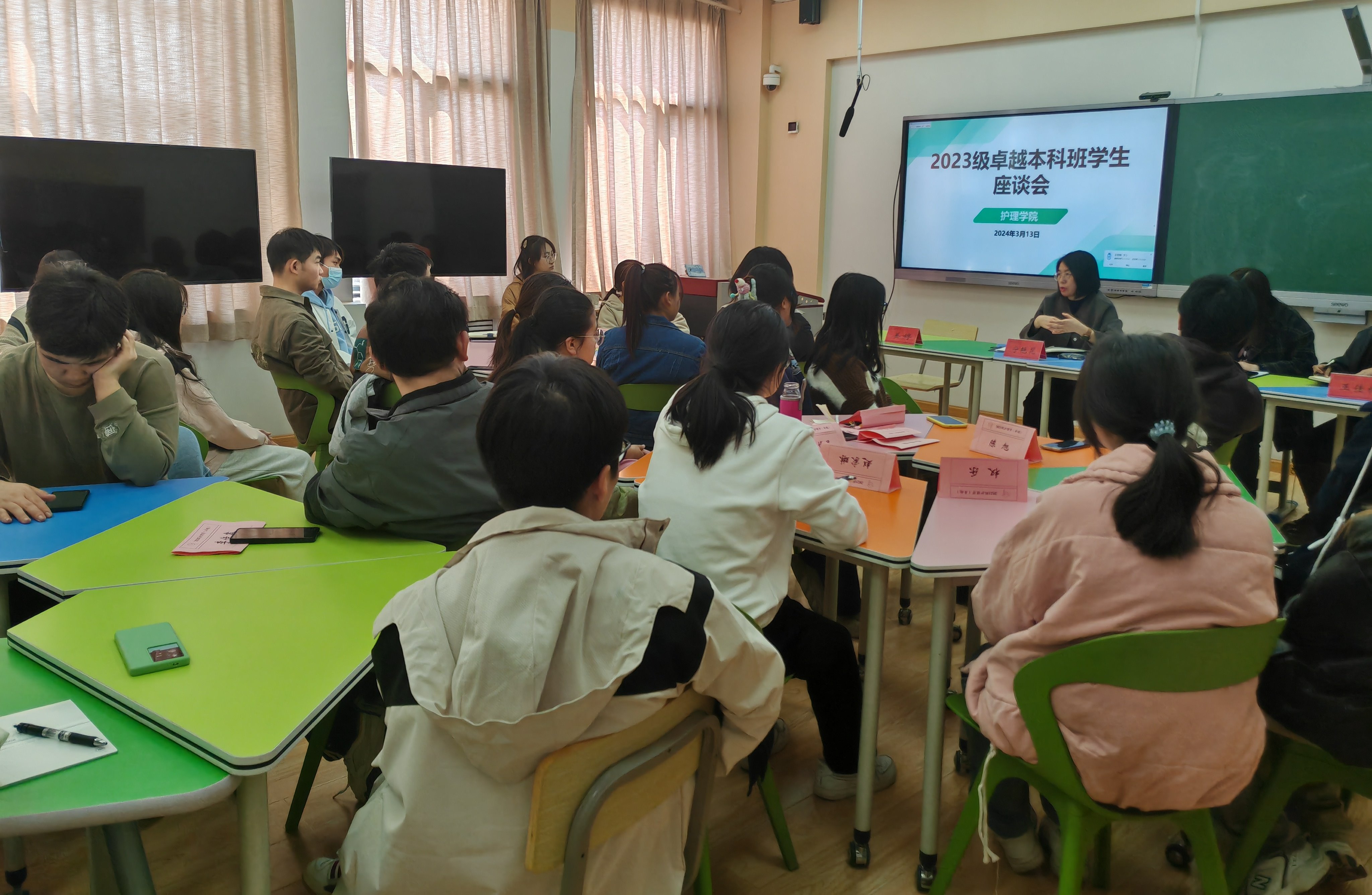 为激发护理学院卓越班学生学习的内生动力。2024年3月13日,学院教学管理办公室组织2023级卓越班全体同学召开本学期初学生座谈会。本次会议由学院副院长宁艳花主持。