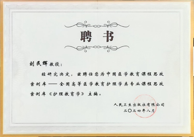 本思政案例库的主编和副主编人选,经人民卫生出版社与教育部高等学校护理学类专业教学指导委员会审定。刘民辉教授受聘担任《护理教育学》课程思政案例库主编,并代表编写团队作题为《〈护理教育学〉课程思政案例编写设想》的报告。此次会议对进一步推进贯彻落实立德树人根本任务、护理学类专业课程思政建设、提升护理学类专业教师课程思政教学能力具有重要意义。