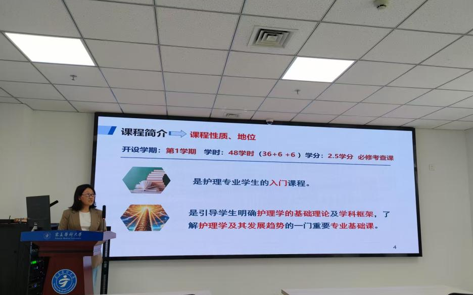 本次交流聚焦卓越班课程建设与教学改革,围绕课程特色、痛点分析及改进方向进行现场汇报。《基础护理学》课程负责人白彩锋介绍,该课程作为护理专业核心基础课程,依托虚拟仿真系统、翻转课堂模式推动“做中学”教学改革,结合课程目标,后续计划引入临床典型案例库,增加虚拟仿真操作占比。《护理学导论》课程负责人穆国霞分享了“三明治”教学法(TST)的应用,以“教师讲授-学生实践-教师点评”模式重构课堂,运用学习通平台提升互动性,实现“以学生为中心”的混合式学习。《护理心理学》课程负责人潘淑均则强调将人文关怀活动融入课程全过程,将目标任务分章分解,循序渐进,引导学生主动学习。