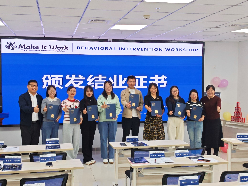刘民辉、李兆君为所有学员颁发了结业证书。两名优秀学员代表梅迎雪和赵杰分别发言,他们表示授课教师非常专业和敬业,精心设置课程内容,耐心解答学员问题,助教认真负责。通过本次培训对行为干预有了系统化的理解,对今后的科研项目申报和实施非常有帮助。