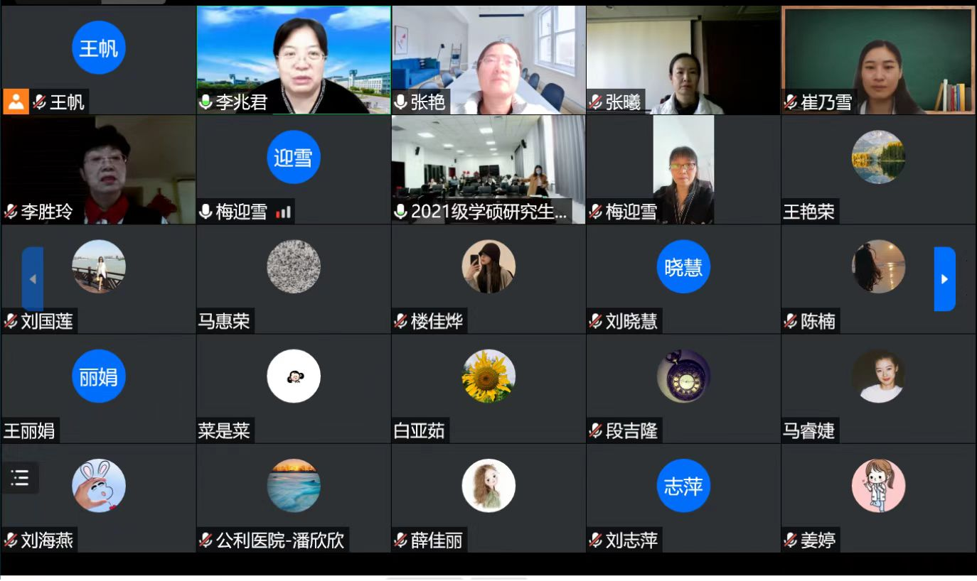 为加强硕士研究生培养与管理工作,学院于2022年11月初举行2021级学术型研究生开题汇报工作。由于疫情防控要求,本次会议线上线下同步进行。李兆君副院长邀请郑州大学护理学院张艳教授、山东大学崔乃雪教授、伟德国际1946源于英国护理学院李胜玲教授、伟德国际1946源于英国总医院张曦主任、伟德国际1946源于英国总医院丁雯主任、宁夏回族自治区人民医院梅迎雪主任担任此次开题汇报的线上评审专家,汇报学生线下参加。
