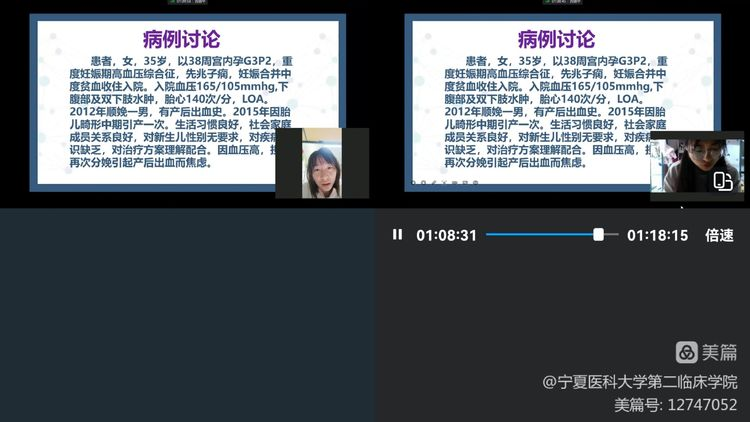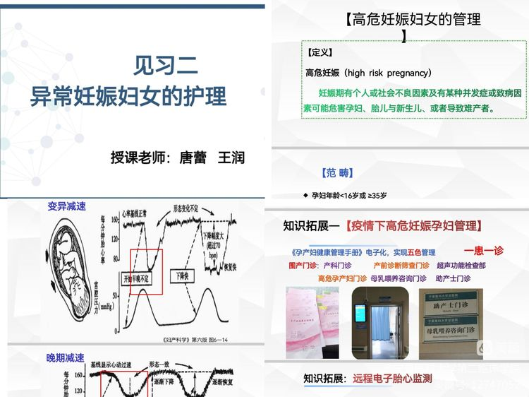 云端视频见习:该环节是本次见习的重点,通过云端视频,带教老师带领学生见习产科病区、产房环境、产房常用的抢救物品及药品、产包内容,高危妊娠产妇评估及管理等内容。通过云端视频,学生能够身临其境的了解正常分娩及高危妊娠产妇的管理。