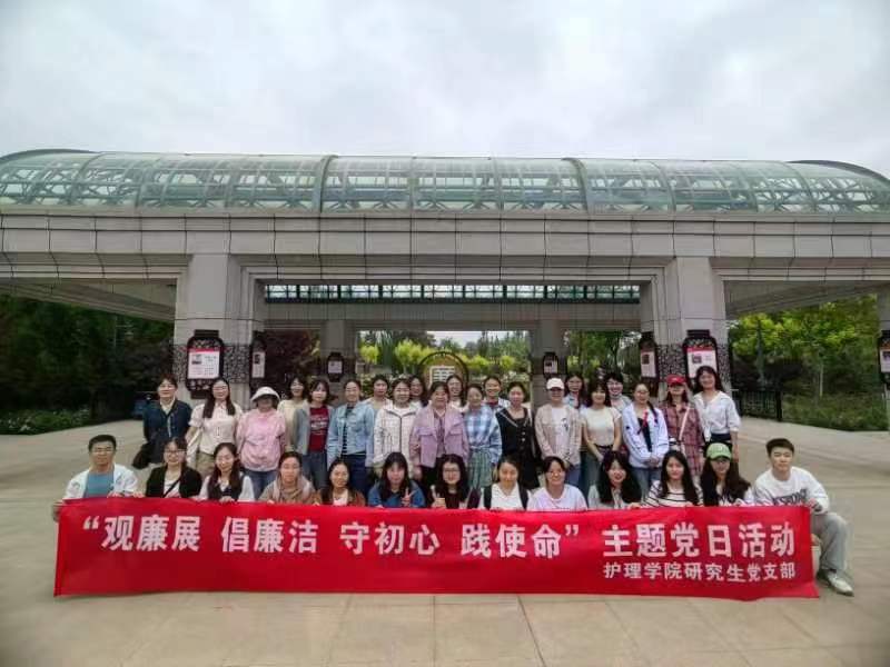 5月29日,护理学院研究生党支部在银川市绿博园开展“观廉展、倡廉洁、守初心、践使命”廉洁教育主题党日活动,学院副院长李兆君、党委副书记耿瑶和支部党员、入党积极分子共40人参加了活动。