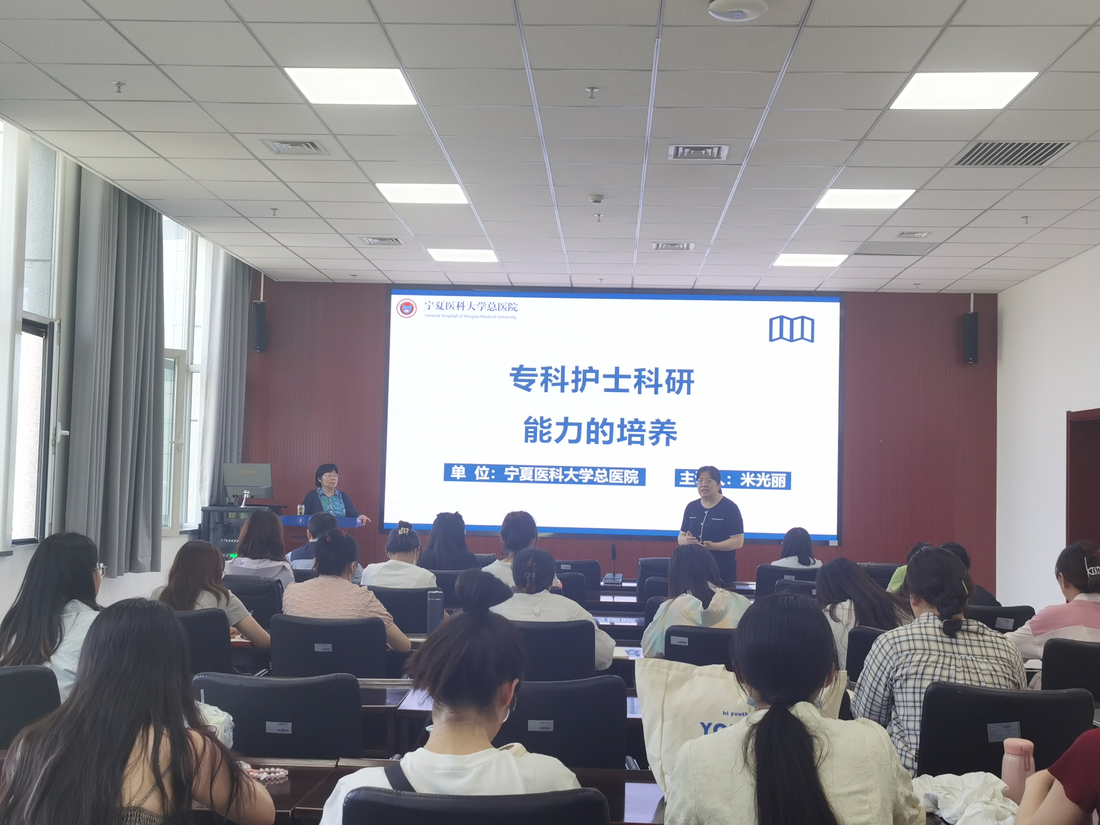 为提升研究生科研能力,在临床中发现问题,2023年6月26日上午,学院邀请伟德国际1946源于英国总医院护理部副主任、伟德国际1946源于英国护理研究所所长米光丽在知行楼201会议室为学院研究生开展了题为“专科护士科研能力的培养”的讲座,2022级、2021级研究生参加,李兆君副院长主持会议。
