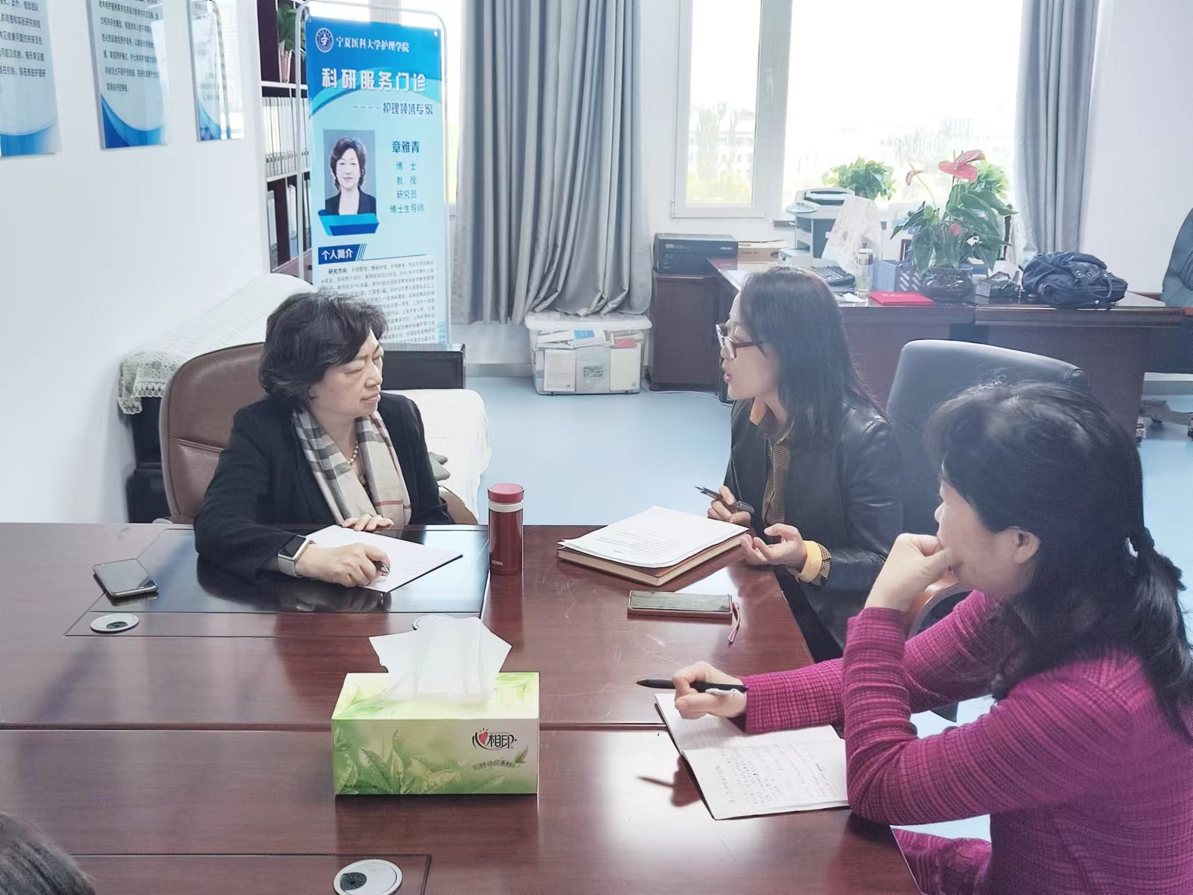 10月8日下午,学院在知行楼201会议室开展了“护理研究所揭牌仪式”,学院党委书记马玉龙和上海交通大学章雅青教授共同揭牌,学院全体教师及研究生参加了此次活动。随后,学院在知行楼1015会议室开展了“护理学院学科建设座谈会”,班子成员及教研室主任参加。座谈会上,学院马玉龙、李兆君、宁艳花和张英浩同志分别介绍了学院基本情况、科研及学科建设情况,专业建设情况和学院毕业生就业情况。章雅青教授和参会人员交流座谈,提出意见和指导。
