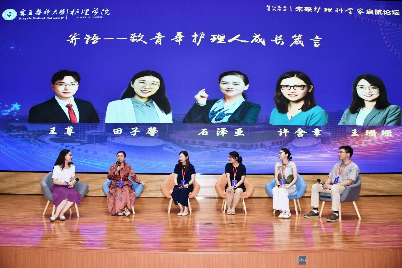 论坛第四阶段以“新锐逐梦程:成长谈”为主题进行探讨交流,由中南大学湘雅护理学院陈琦蓉教授主持,石泽亚教授、许含章教授、王姗姗教授、田子馨老师及王尊博士从“起点—寻找职业初心与动力源、选择—绘制职业蓝图与发展路、挑战—化挑战为进阶跃迁契机、跨界—拥抱职业发展无限可能、趋势—洞见护理职业未来方向、寄语—致青年护理人成长箴言和互动—启发思维共鸣交流空间”七个方面深入分享了个性化的成长与发展路径,使青年护理人深受启迪和启发。