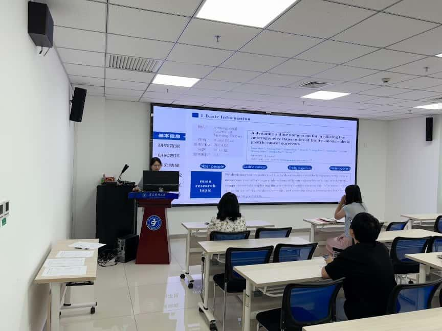 本次活动不仅加深了同学们对老年肿瘤患者衰弱轨迹预测和重症患者口腔护理干预的理解,而且激发了同学们对循证护理实践优化的创新思考。汇报者对文献的研究背景、目的、方法及讨论进行细致阐述,并分析了文章的优点及研究不足之处。点评老师充分肯定了汇报同学的表现,同时指出文献汇报中有待优化的方向,鼓励同学们以严谨的科研态度、创新的思维模式开展科学研究,极大地激发了研究生的科研热情与探索动力。