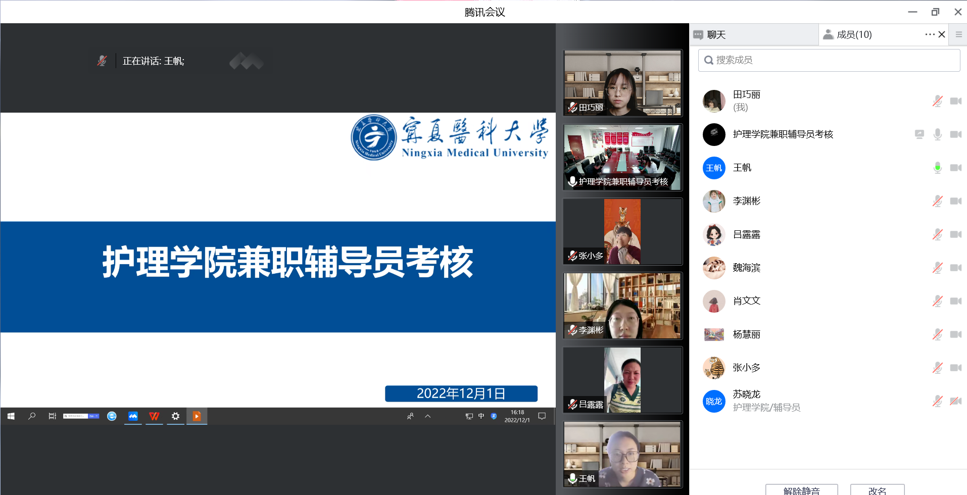 12月1日下午,护理学院召开2021-2022年兼职辅导员线上考核会议,学院党委副书记耿瑶、张英浩及全体专兼职辅导员参加会议。